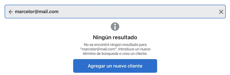 Verificamos si el cliente ya está registrado en nuestra base de datos, lo cual hacemos a través de su correo electrónico.