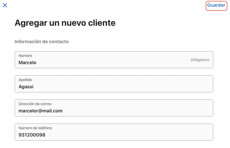 Si el cliente no está registrado, seleccionamos "agregar un nuevo cliente".