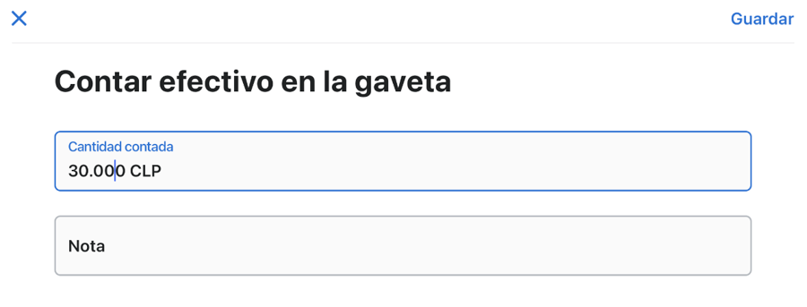 Contamos y anotamos el efectivo total que hay en la gaveta y guardamos.