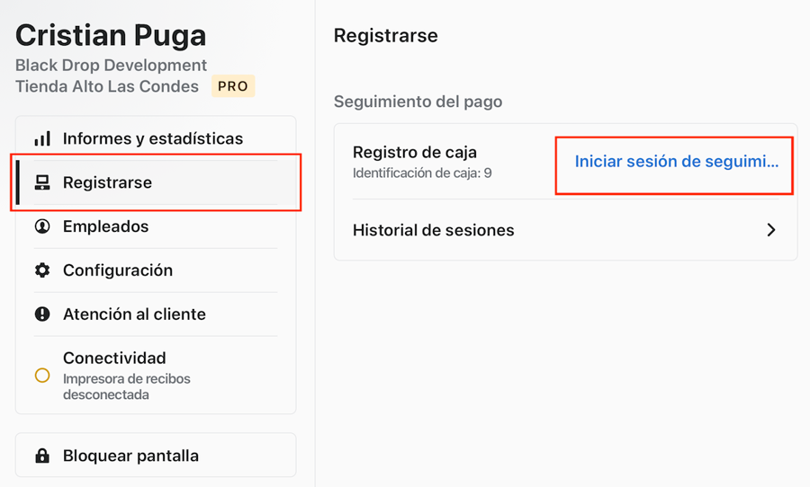 Apretamos en "Registrarse" en el menu de la izquierda y luego en "Iniciar sesión de seguimiento".