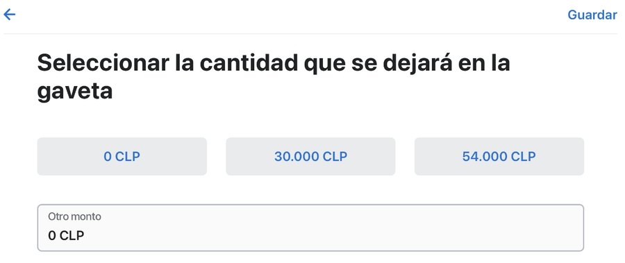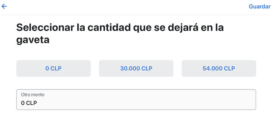 Seleccionamos el monto que queremos dejar en la gaveta según corresponda.