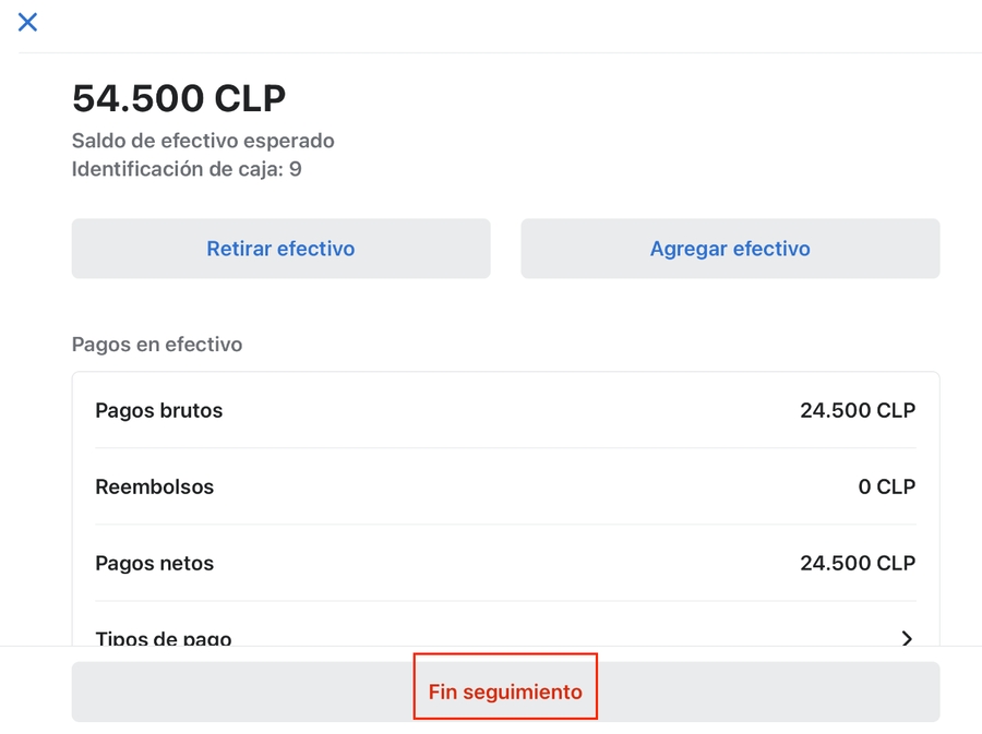 Nos mostrara el detalle de la caja que queremos cerrar, apretamos en "Fin seguimiento".