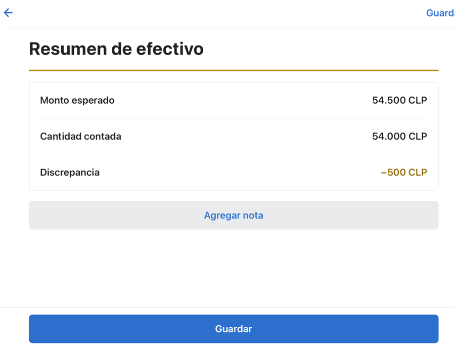 Nos dará la comparación de lo contado con lo que debiese tener la gaveta, en caso de discrepancia agregar nota según corresponda y guardamos.