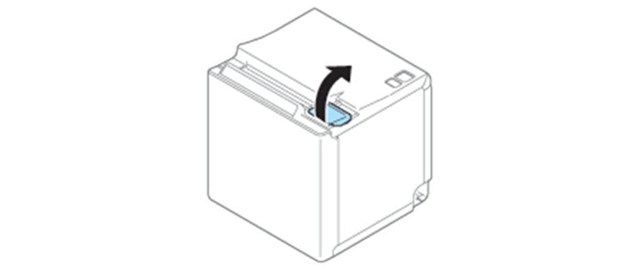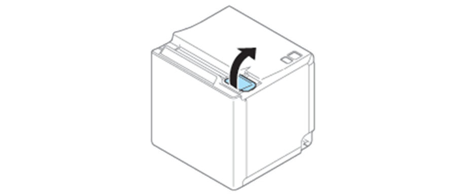 Ahora introduce el rollo de recibos. Primero abre la tapa superior de tu impresora presionando la palanca del lado derecho