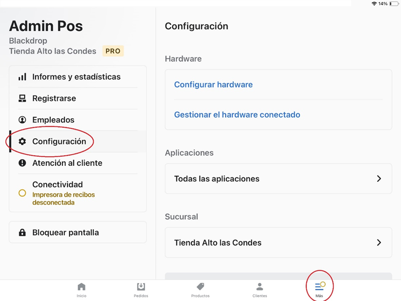 Verificar conexión de impresora de recibos y Lector Bluetooth con Shopify Pos.