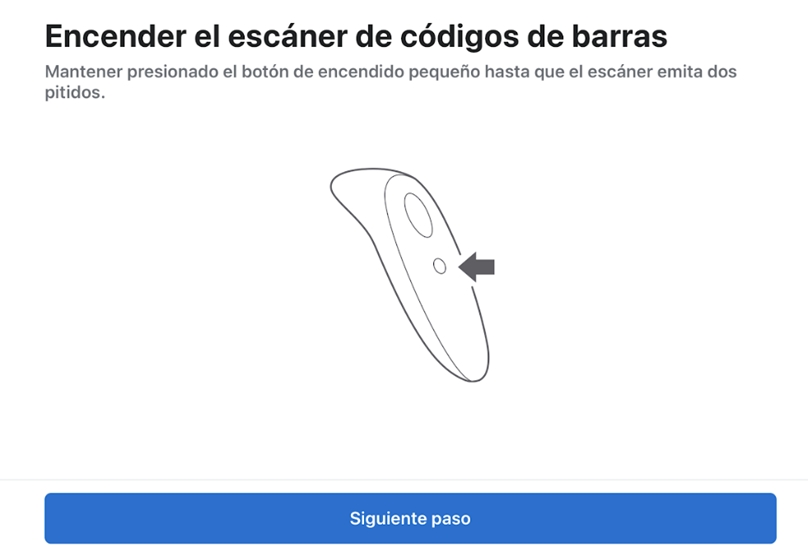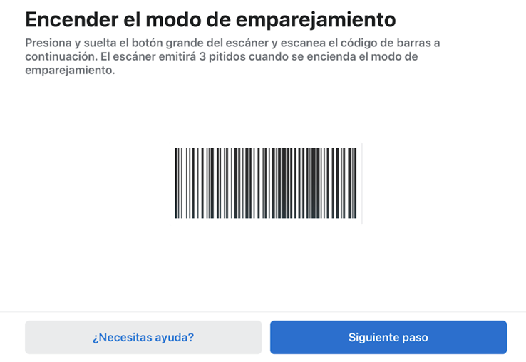 Se debe realizar Escáner de código de barra, para vincular dispositivo con Shopify Pos. Seleccionar Siguiente Paso.