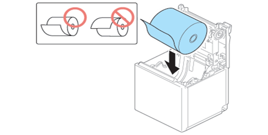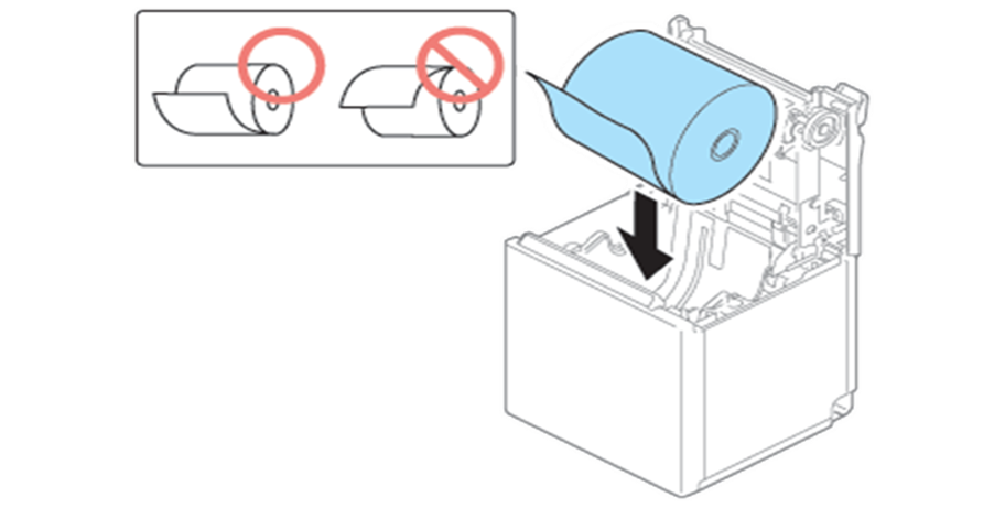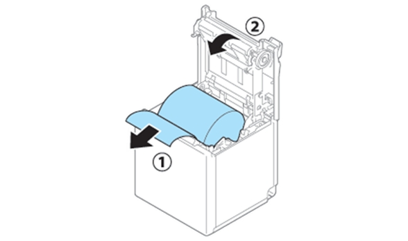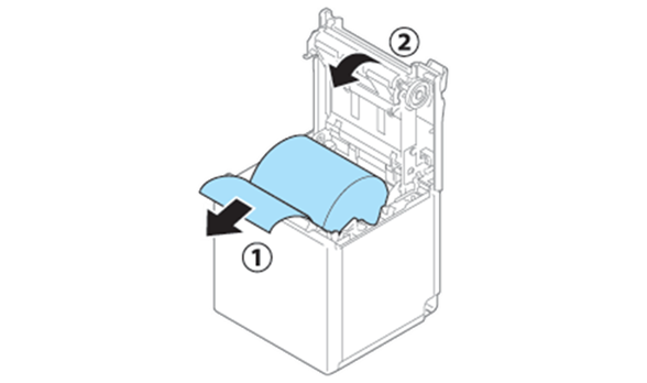 Ahora inserta el rollo de recibos como se muestra en la siguiente ilustración.